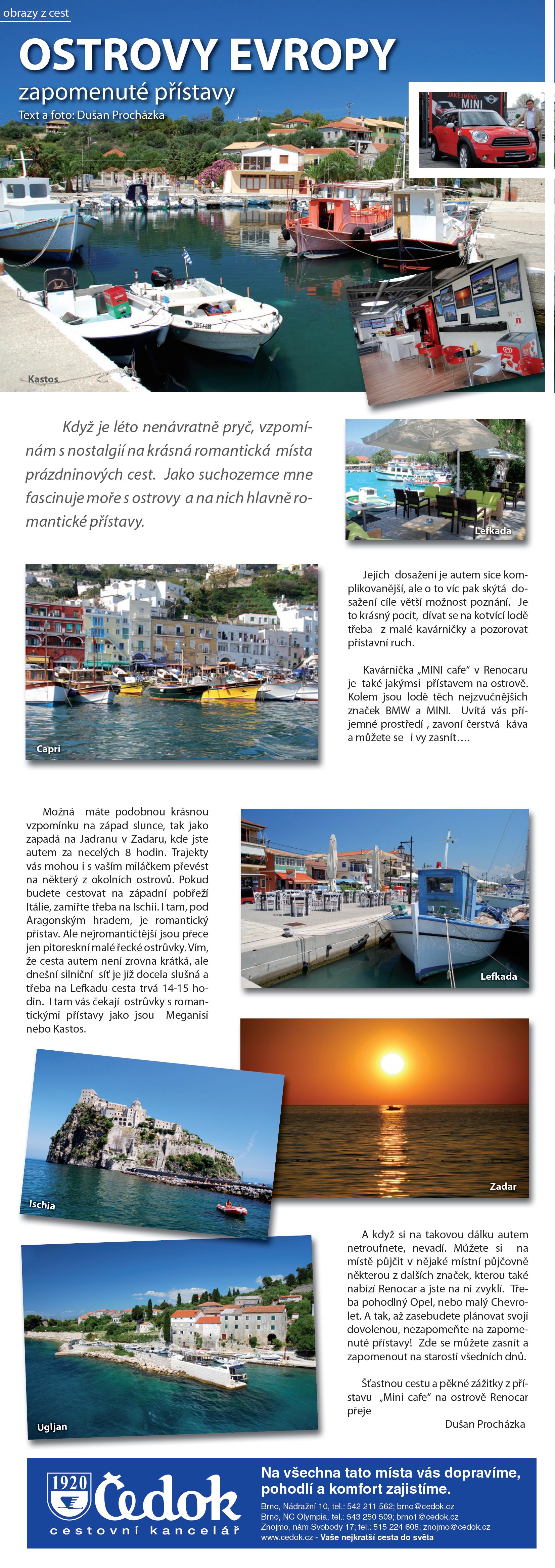 Když je léto nenávratně pryč, vzpomínám s nostalgií na krásná romantická místa prázdninových cest. Jako suchozemce mne fascinuje moře s ostrovy a na nic hlavně romantické přístavy.